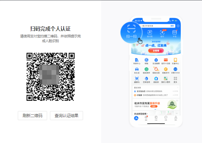 姓名和身份证号二要素核验通过后,会弹出支付宝刷脸二维码。
