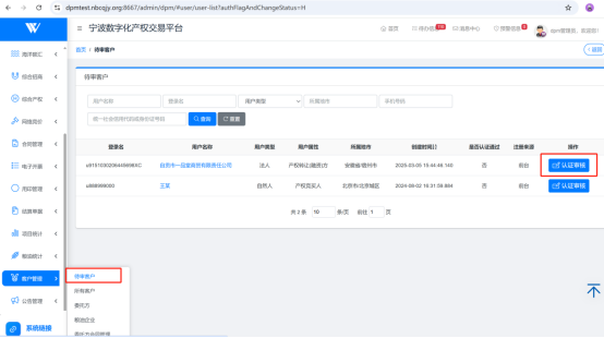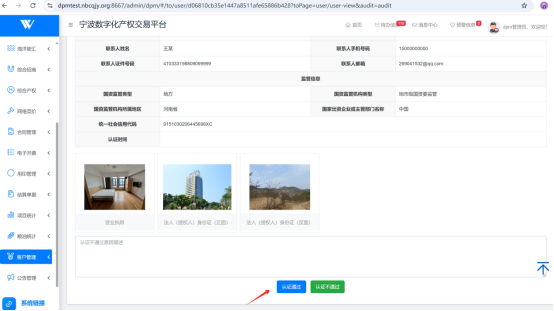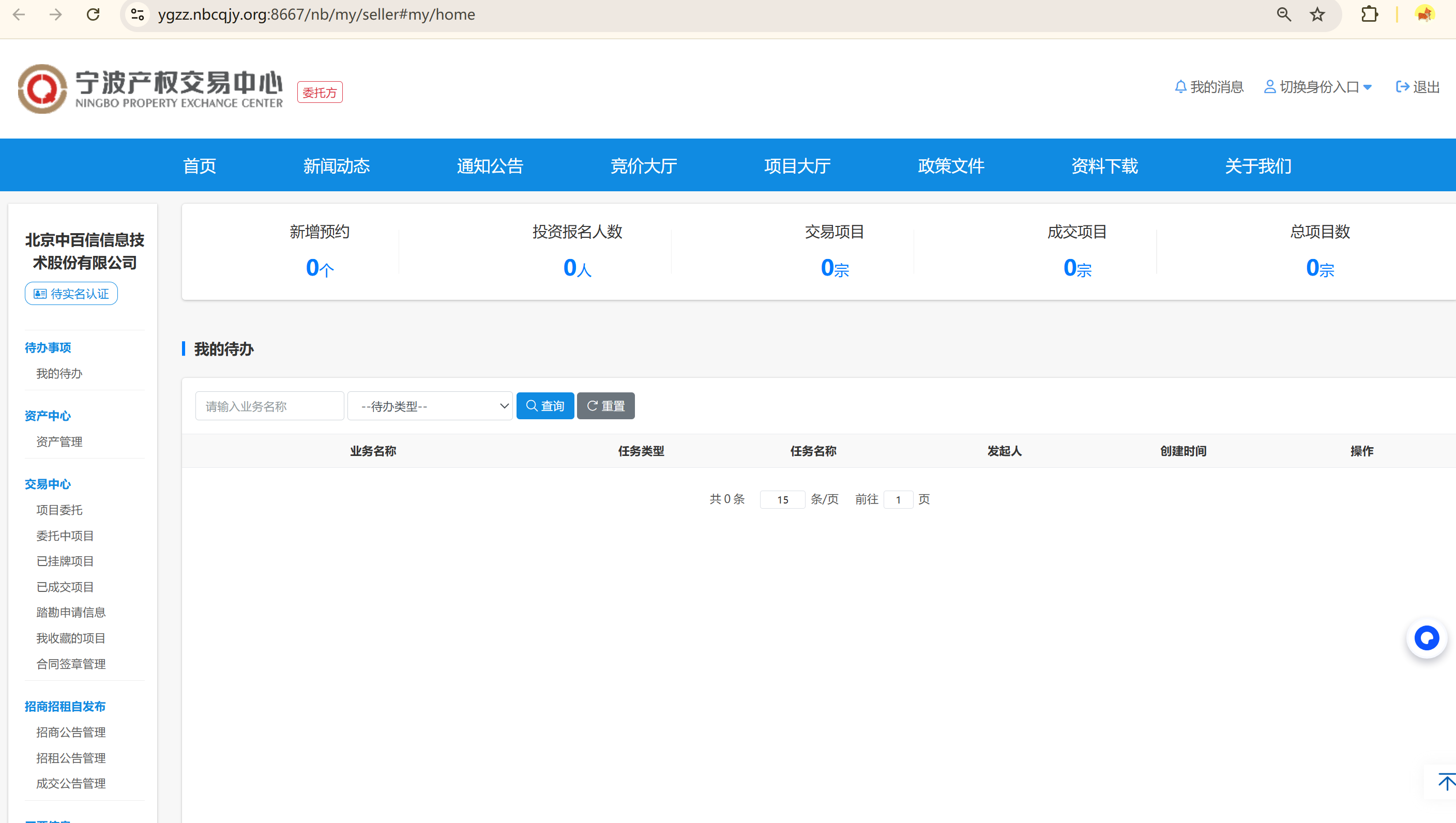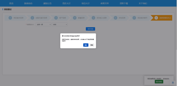 提交成功后,后台交易机构内部可以审核委托方资格,审核通过后该用户可具备项目委托资格。