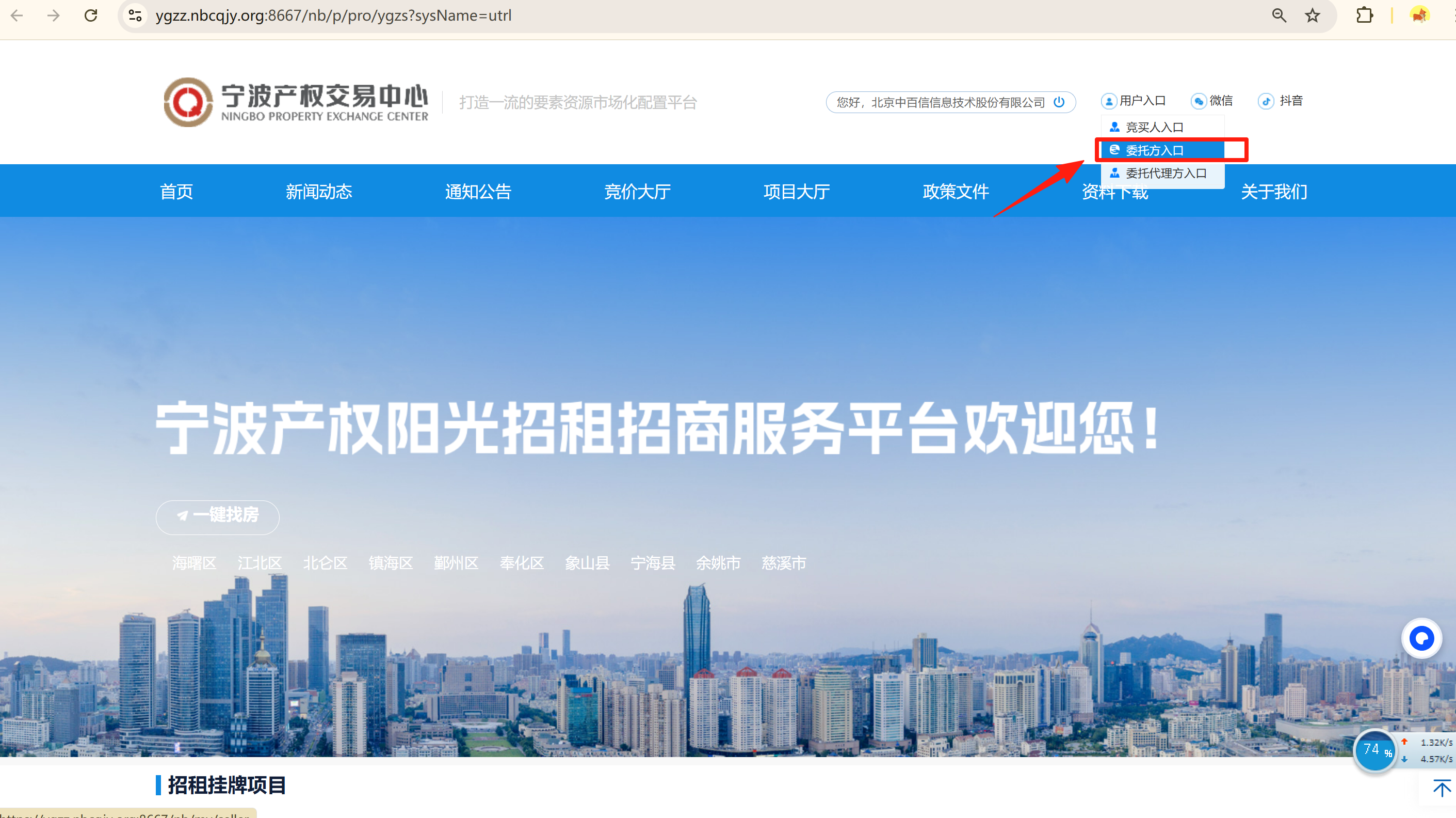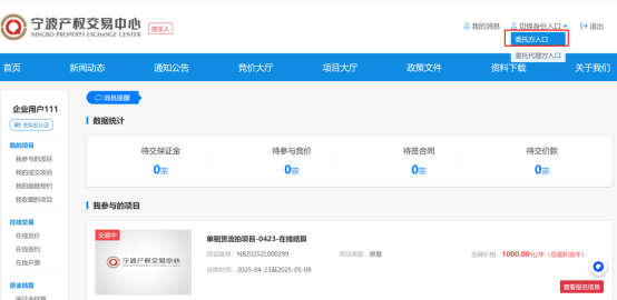 委托方登录成功后,点击右上角的“委托方入口”进入委托方用户中心。