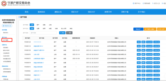 在左侧菜单栏中,点击“资产管理”可以管理该委托方名下的资产。