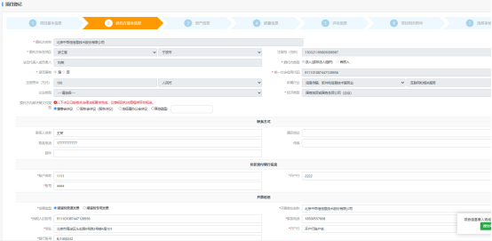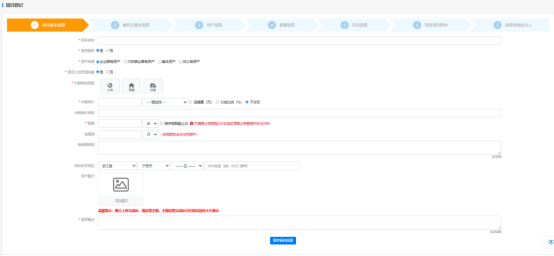 填写完毕后,点击【保存信息】保存委托方信息。点击③资产信息进入第三步资产信息的录入页面。