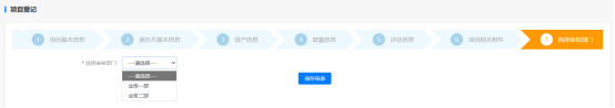 (7)选择审核部门界面,可选择一个业务部门去审核委托项目。如下图所示: