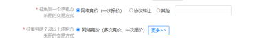 征集到两个以及上承租方采用的交易方式:可选择的交易方式为网络竞价(多次竞价、一次报价)、综合评议、招投标、拍卖、其他。