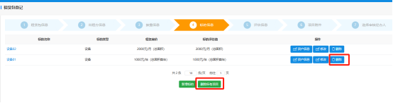 标的信息添加完成,若需要删除标的信息,可点击删除或者批量所有项目进行删除。