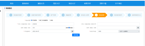 保存信息后,点击⑥评估信息,进入评估信息录入界面。