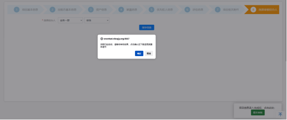 项目所有信息都录入完成后,点击提交审核可启动审批流程。点击确定后,则自动【下载信息披露申请书】