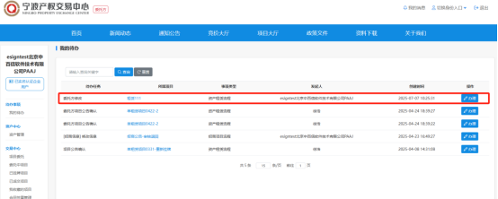 提交审核后,可在委托中项目列表中上传已盖章信息披露申请书,并可以查看项目交易进度。