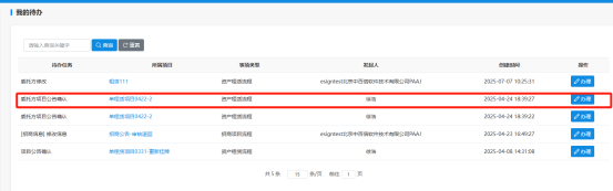 在我的待办列表中可以查看委托方项目公告确认待办,点击“办理”后,查看公告信息并给出审核意见。