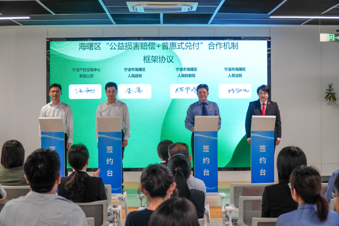 2024年3月,宁波产权交易中心在象山县建设全国首个跨省蓝碳生态碳账户,并完成首宗“司法+蓝碳+产权”交易。这一创新模式通过市场化机制,将生态损害赔偿与蓝碳认购有机结合,为海洋生态修复提供了可量化、可交易的制度路径。6月,中心与宁波海事法院、宁波市人民检察院签署“海洋生态司法保护+蓝碳交易”合作机制协议,引导海洋生态环境损害赔偿义务人通过自愿认购蓝碳项目履行生态修复责任。该创新实践获央视新闻报道。2025年4月,中心进一步将合作机制拓展至绿碳领域,与海曙区政府、区检察院和法院达成“公益损害赔偿+普惠式兑付”合作机制,为竹林经营碳汇在司法场景的价值转化提供了创新案例。